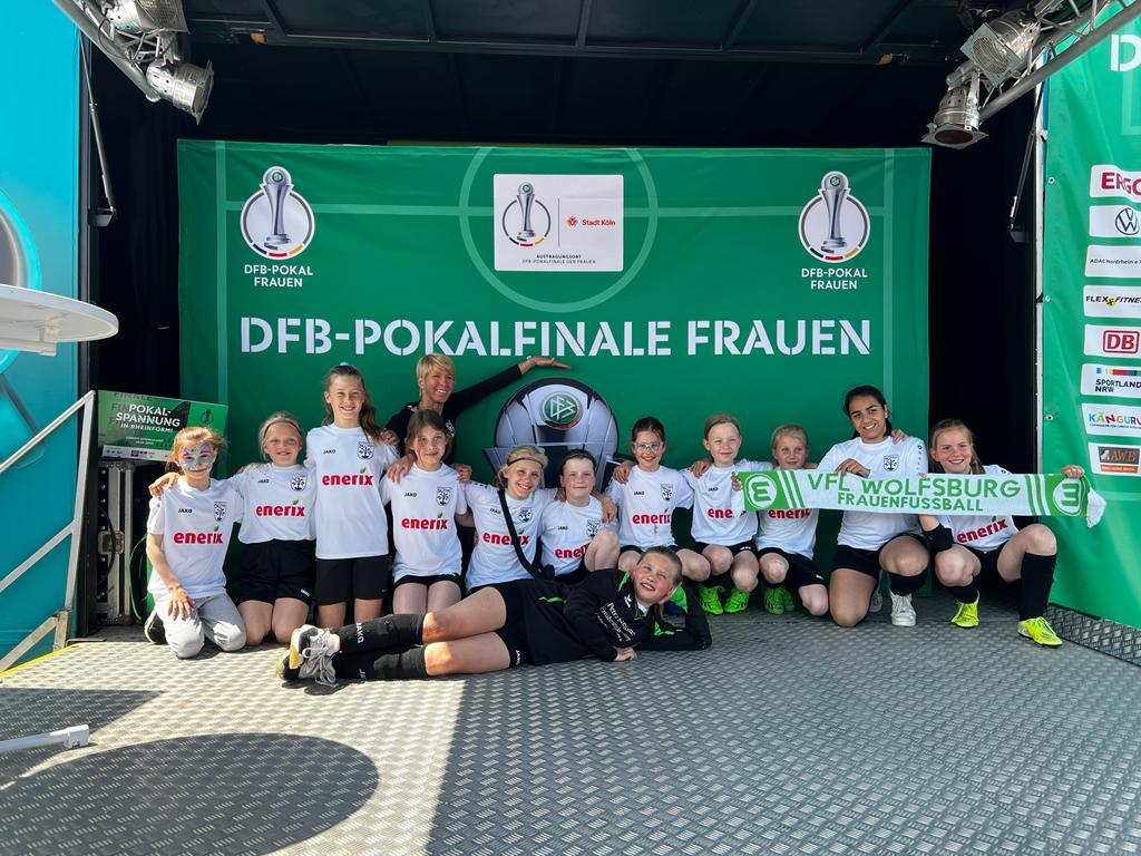 Nach dem Turnier ging es dann ins ausverkaufte Rheinenergie Stadion zum Pokalfinale zwischen dem VFL Wolfsburg und SC Freiburg, um ihre Vorbilder live zu sehen.